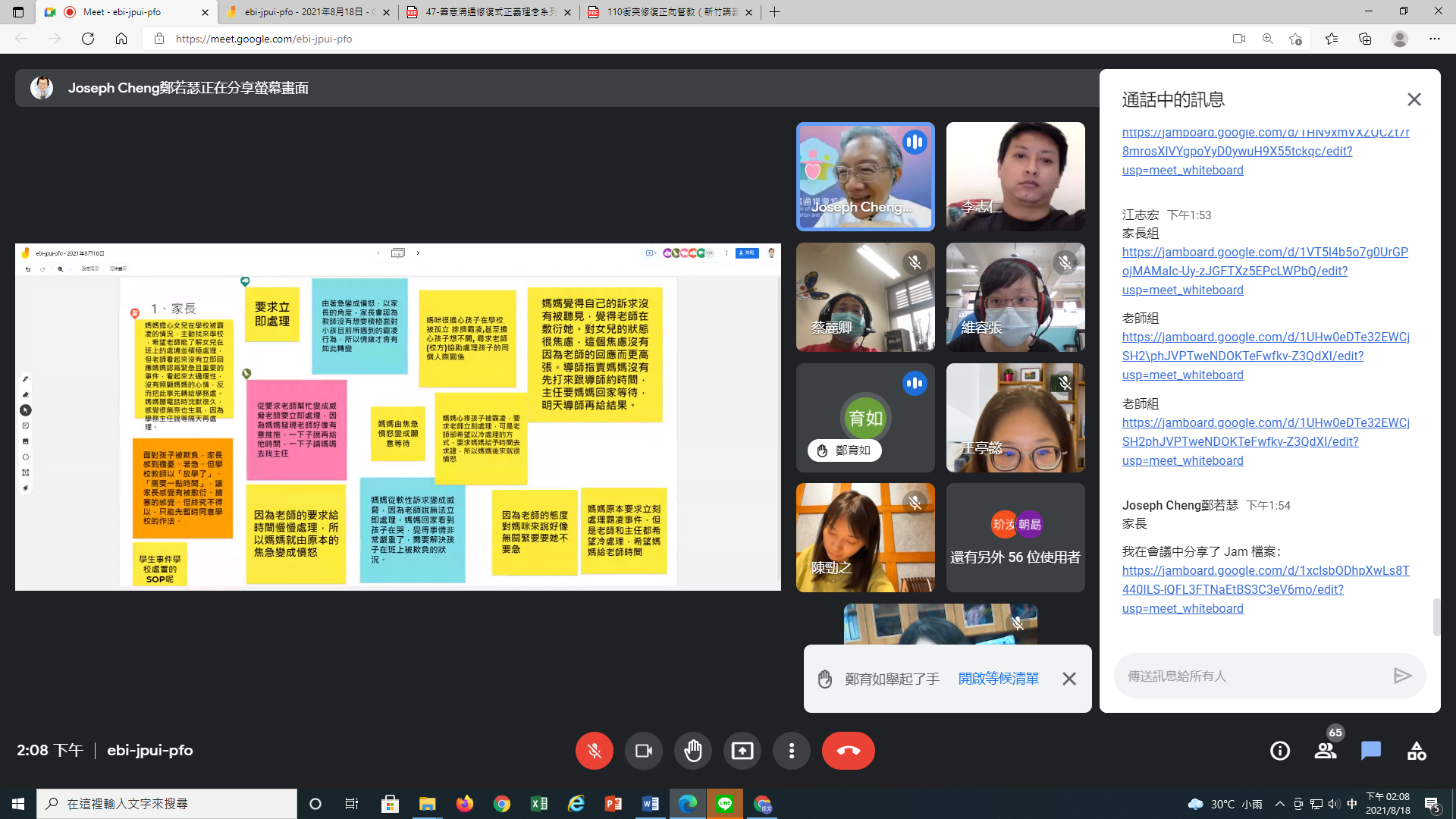 8/18-19:龍山國小承辦「善意溝通/修復式正義理念工作坊」,鄭若瑟醫師及善意溝通協會講師群主講,本市國中小各校教師83人參與。