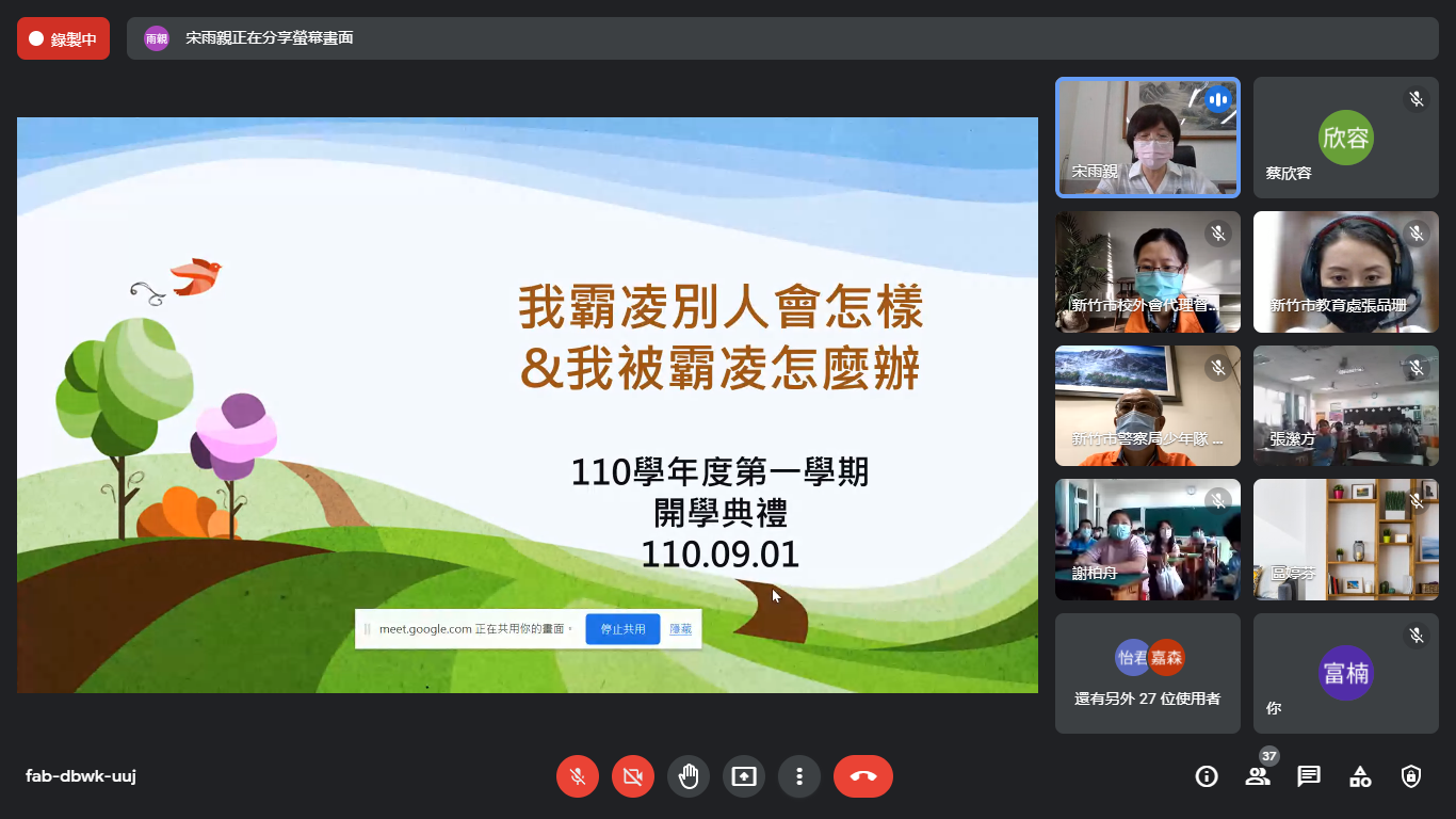 最後,校長、學校行政、來賓與全體八年級師生在線上合照留念,為新學年度許下願望,祝禱本市學子在未來一年,都能在友善的校園裡安心學習、穩定成長,度過充實豐富的求學生涯。