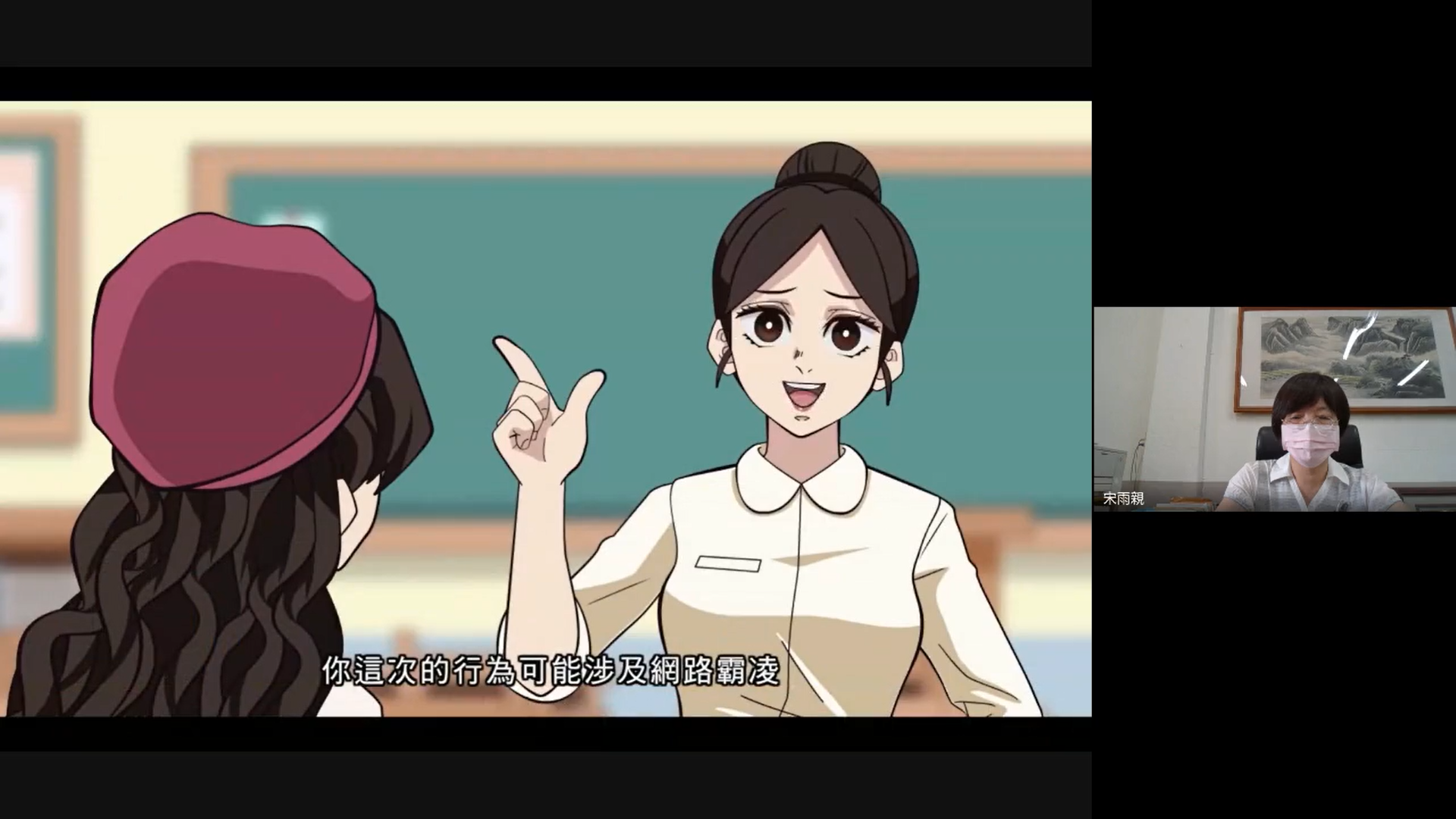 為表示對本議題的重視,在學務處的規劃準備之下,由校長宋雨親親自利用動畫「哆啦A 夢」展開宣導,藉著故事的主要角色分析霸凌行為人、被害人及旁觀者的關係,鼓勵學生反思:面對類似情境,可以如何應對與處理。接著,校長藉由貼近學生生活情境的短片「你也是藍光人嗎?」、「有圖有真相」,說明健康上網及網路識讀的概念,最後,導引突顯出網路霸凌防制的議題,希望學生因而獲得更深刻的認知,養成正確的上網習慣,保護自己也尊重他人。
