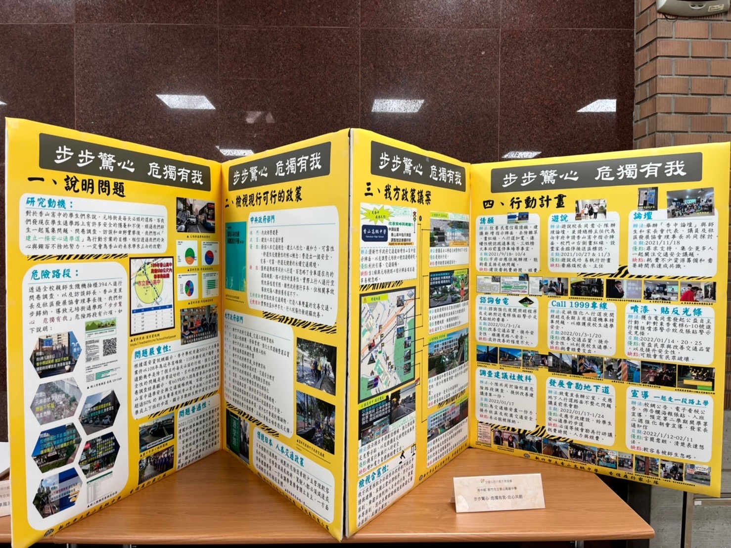 公民行動方案競賽由財團法人民間公民與法治教育基金會舉辦,以深耕臺灣公民教育種子為使命,分為國小、國中及高中職3組,應用美國公民教育中心的「公民行動方案」課程,激發學子關心生活環境,挖掘公共議題,進而透過提出公共議題、分析可行方案、形成政策提案及具體行動計畫四大步驟的實作,提出完整行動方案,係公民參與推動政策實踐在校園裡的微型操作。 高度認同方案強化公民教育的功能,許方玲老師自105學年度起開始指導學生參與公民行動方案。本次方案藉由學習單,請各班學生發掘並記錄日常生活的困難,復經統計彙整討論,將議題收縮為交通安全。過程中利用問卷調查、人物訪談和田野踏查等方法,定調方案目標為「建立一條安心通學道」。由於和日常生活習習相關,來自參與者本身的經驗,因此,在教師精心指引下,小隊能準確掌握問題,將之再剖析分類為6個子題,並針對各子題,探究進而提出可能的改善之道。邁入次階段,有關後續校內外的遊說、請願和倡議,則在校方行政團隊的大力支持下,順利找到合適的對口單位。