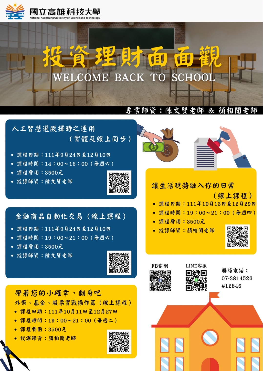 轉知國立高雄科技大學教育推廣中心「投資理財類」課程