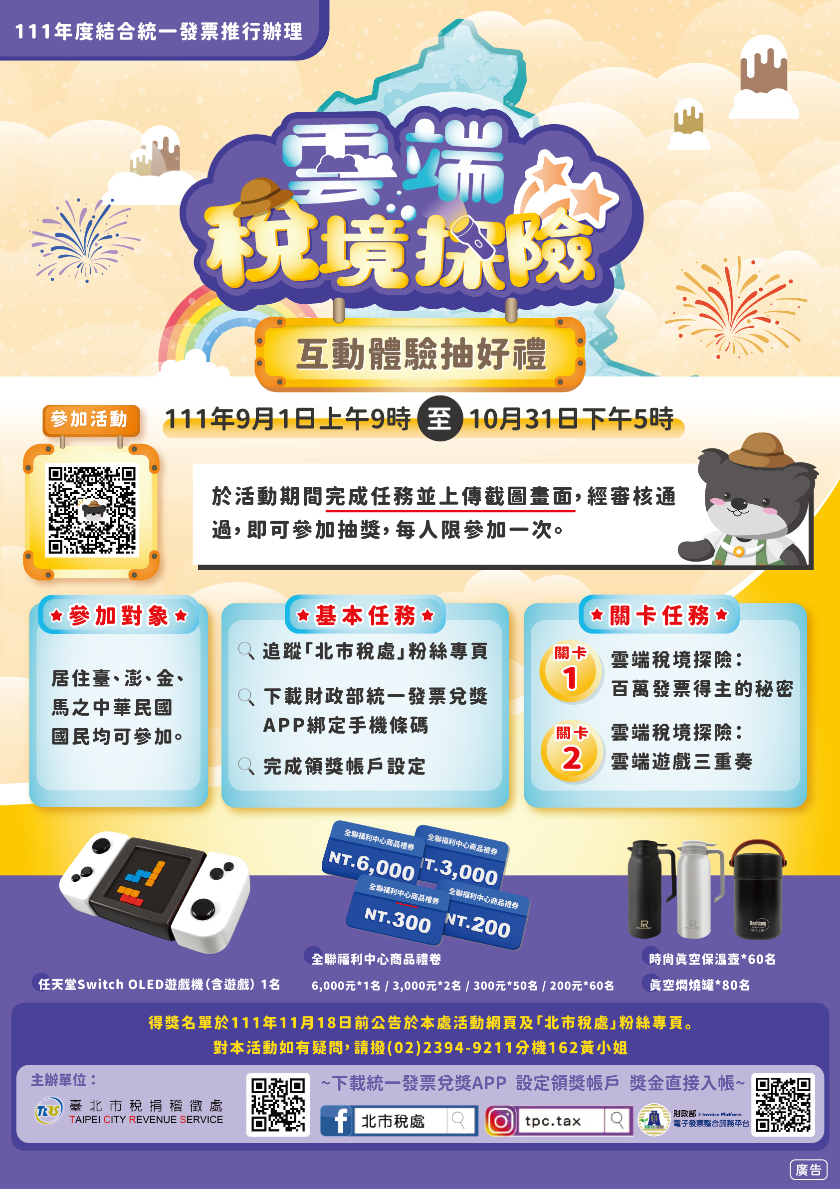 【轉知】臺北市稅捐稽徵處「雲端稅境探險,互動體驗抽好禮」活動