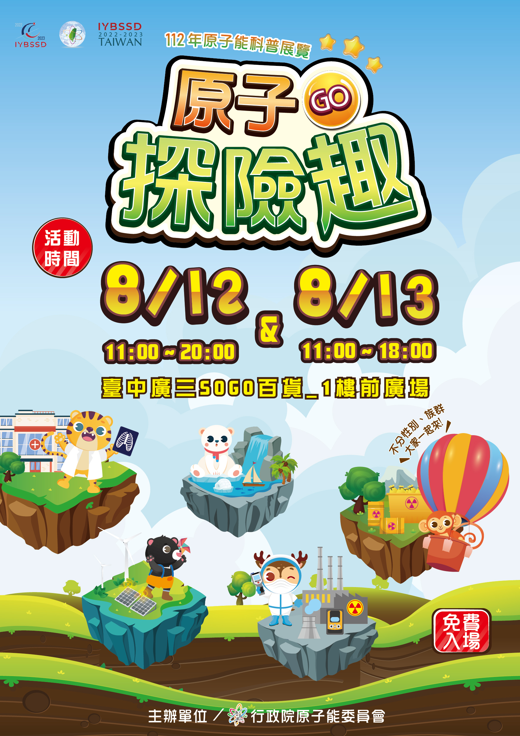 轉知行政院原子能委員會訂於112年8月12日至13日假臺中廣三SOGO百貨舉辦「原子GO 探險趣」原子能科技科普展。