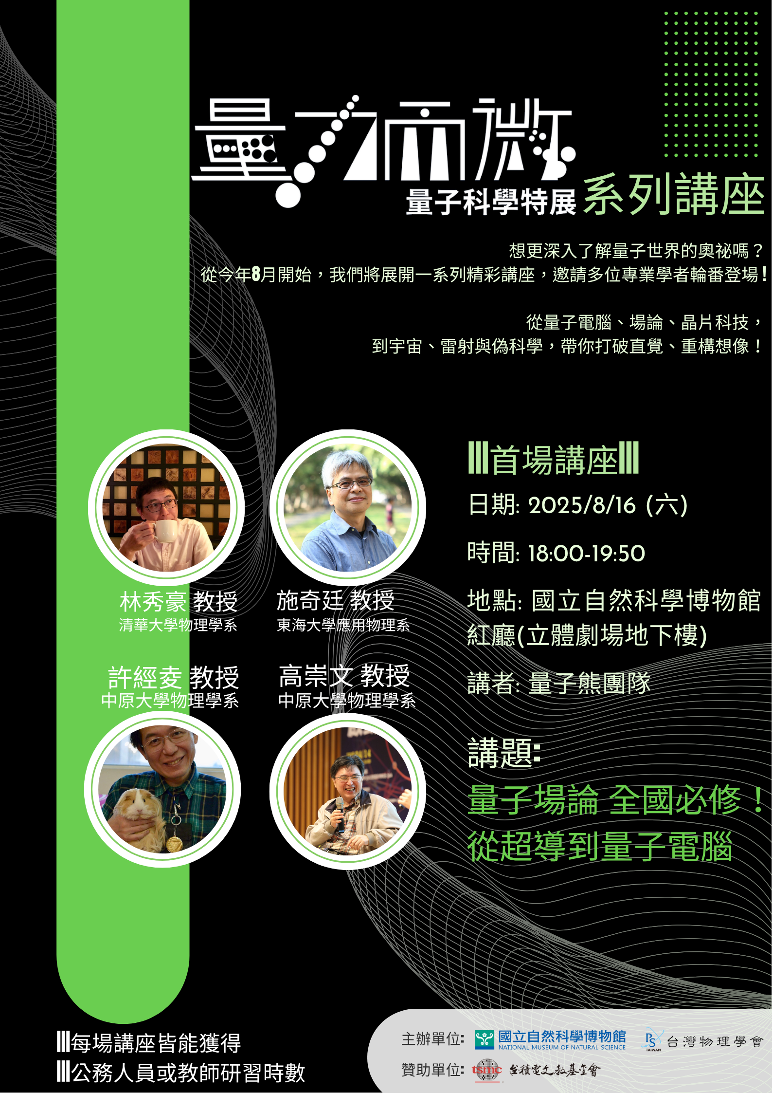 轉知社團法人台灣物理學會與國立自然科學博物館共同舉辦「量子科學系列講座」首場活動資訊。(如附件)