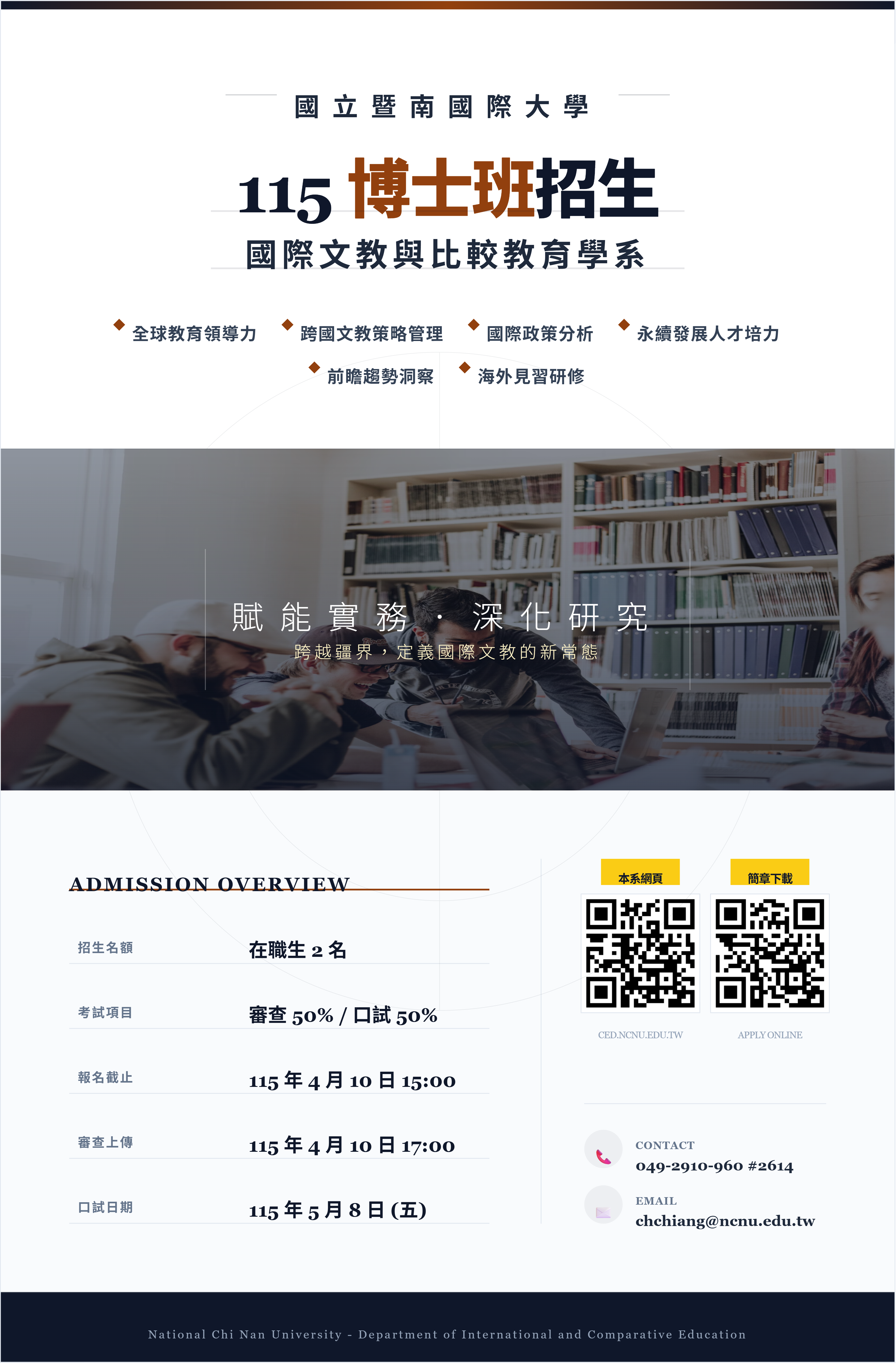 轉知國立暨南國際大學「115學年度國際文教與比較教育學系博士班」入學考試資訊