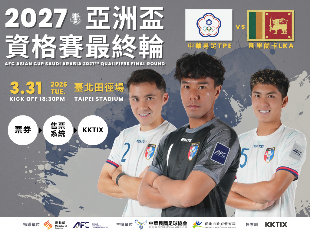 轉知中華民國足球協會辦理『2027亞洲盃資格賽最終輪 中華台北VS斯里蘭卡』
