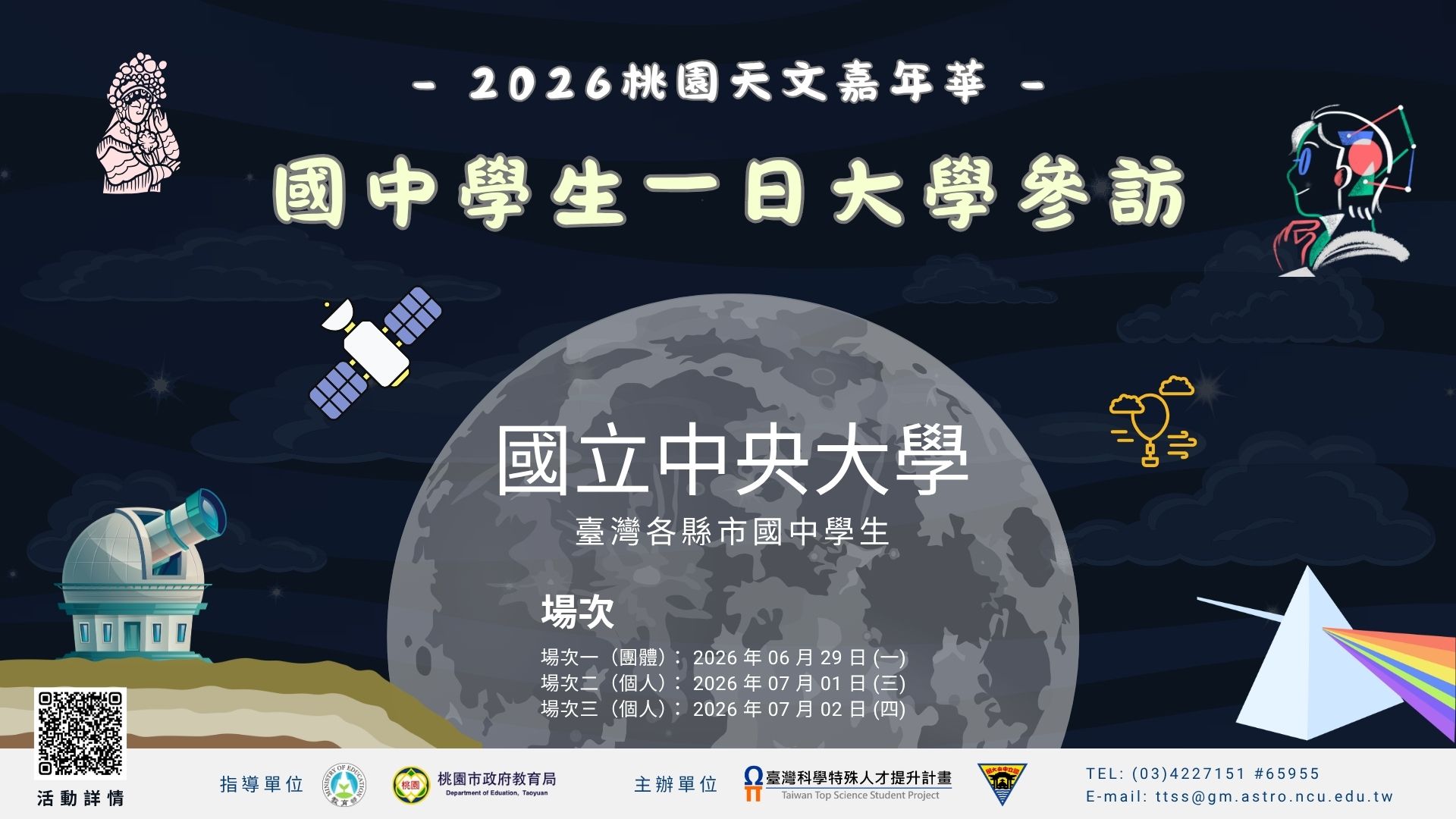 轉知國立中央大學辦理「2026桃園天文嘉年華—國中學生一日大學參訪」活動,歡迎國中師生踴躍報名參加。(如附件)