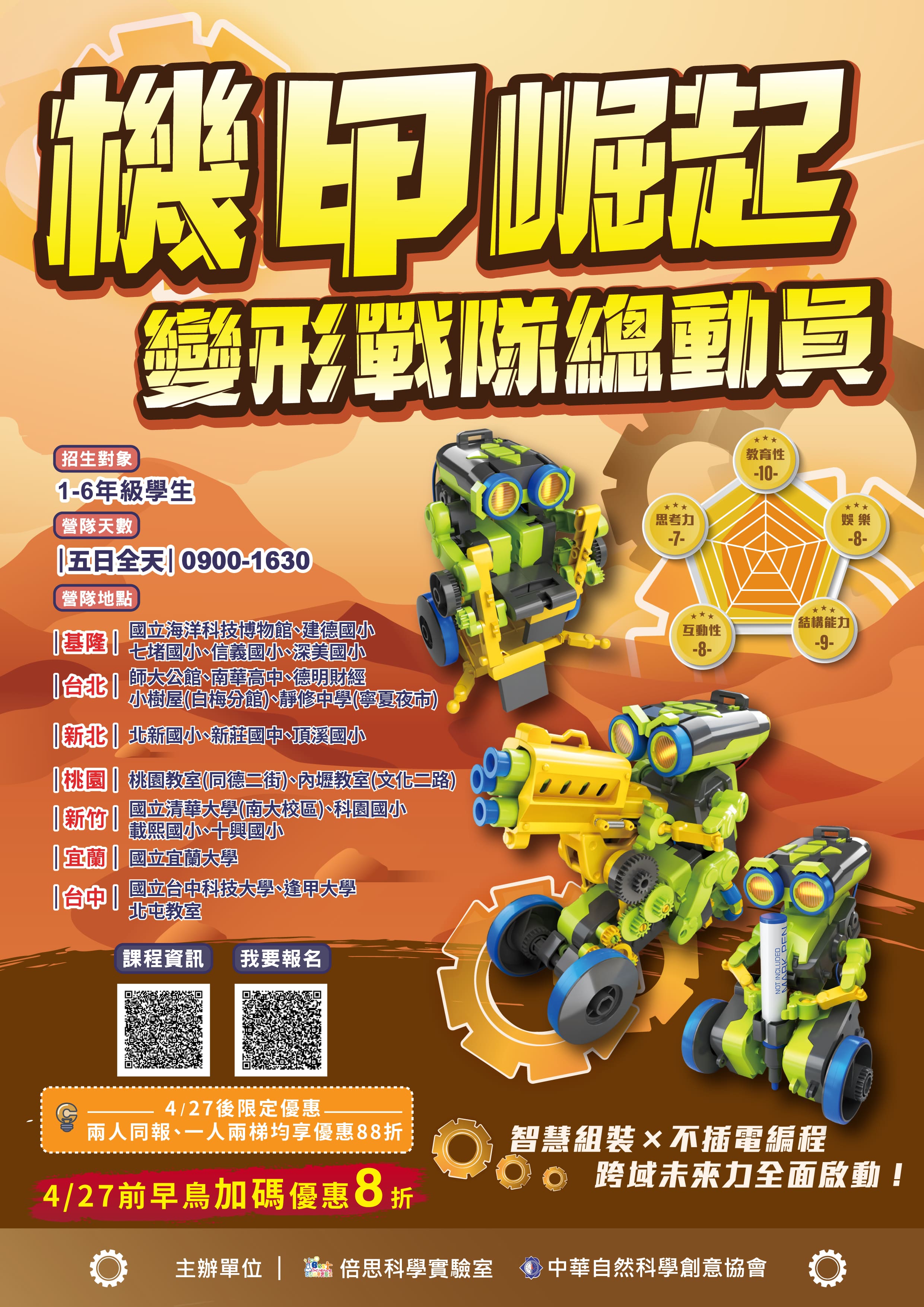 轉知社團法人中華自然科學創意協會與倍思科學實驗室共同舉辦「2026年暑假科學夏令營活動」資訊,提供本市公立國小每梯次公益名額壹名免收學費,酌收材料費(請洽聯絡窗口)。(如附件)