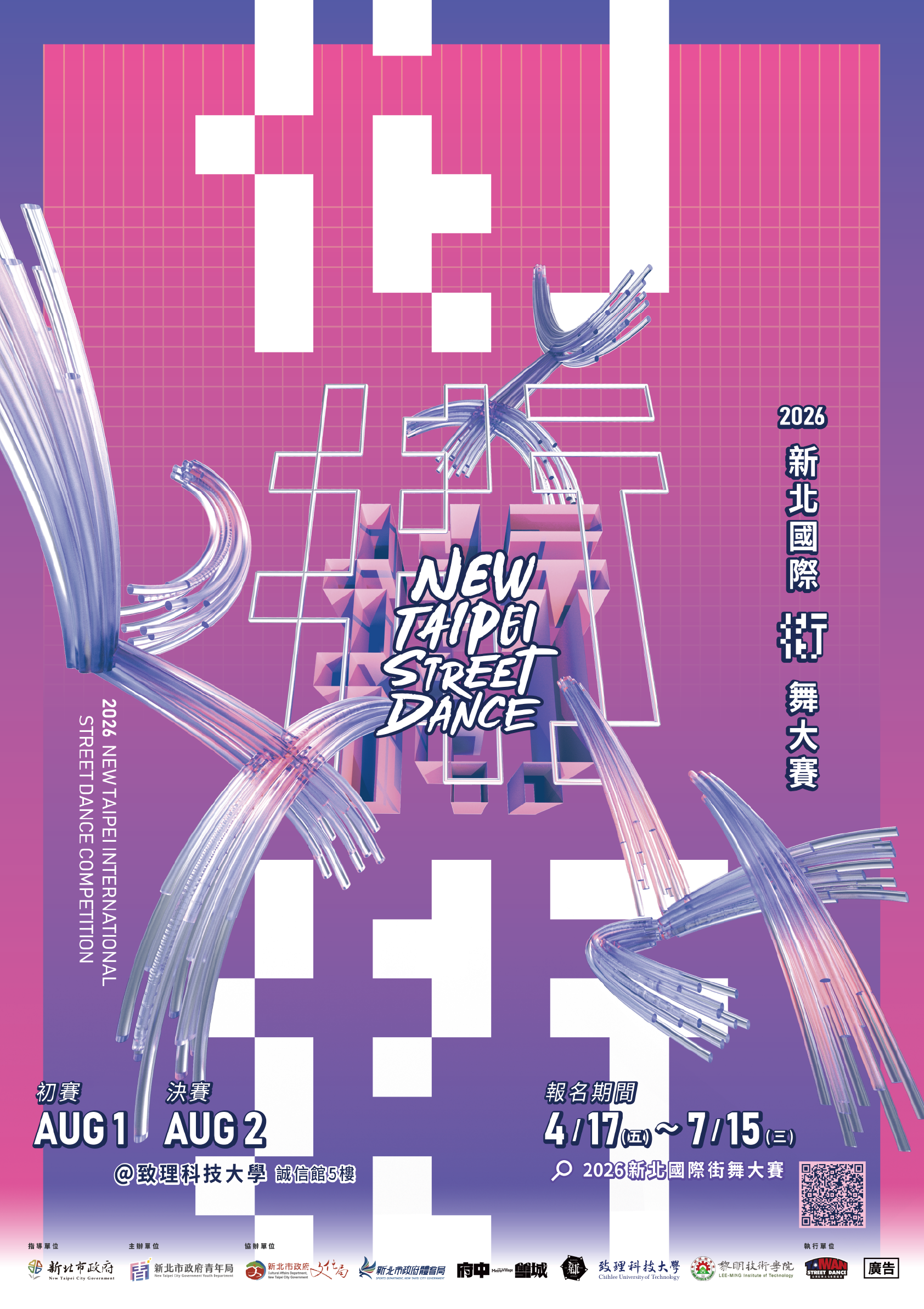 二、賽事活動資訊(詳見賽事簡章): (一)報名時間:自即日起至115年7月15日(三)止。 (二)賽事時間:115年8月1日(六)預賽、8月2日(日)決賽。 (三)賽事地點:致理科技大學誠信館(新北市板橋區文化路一段313號)。 (四)賽事項目:排舞賽(青少年組)、霹靂舞一對一(不限制組)、不限舞風一對一(不限制組)、不限舞風一對一(青少年組)。 (五)賽事報名及觀賽索票:https://lihi3.me/Ue7RU (六)獎勵機制:包含預賽及決賽獎勵,另不限制風格一對一(無限制組)冠、亞、季軍選手將獲得國際賽事之種子選手資格,由冠軍參與一對一賽事項目;由冠、亞、季 軍選手組成團體,參與三對三項目,並獲國際交流獎勵10萬(含機票、住宿、交通及餐費等),總獎金達48萬7,000元。